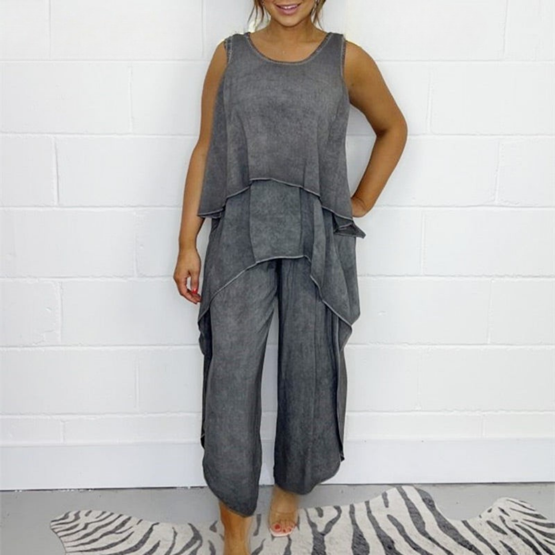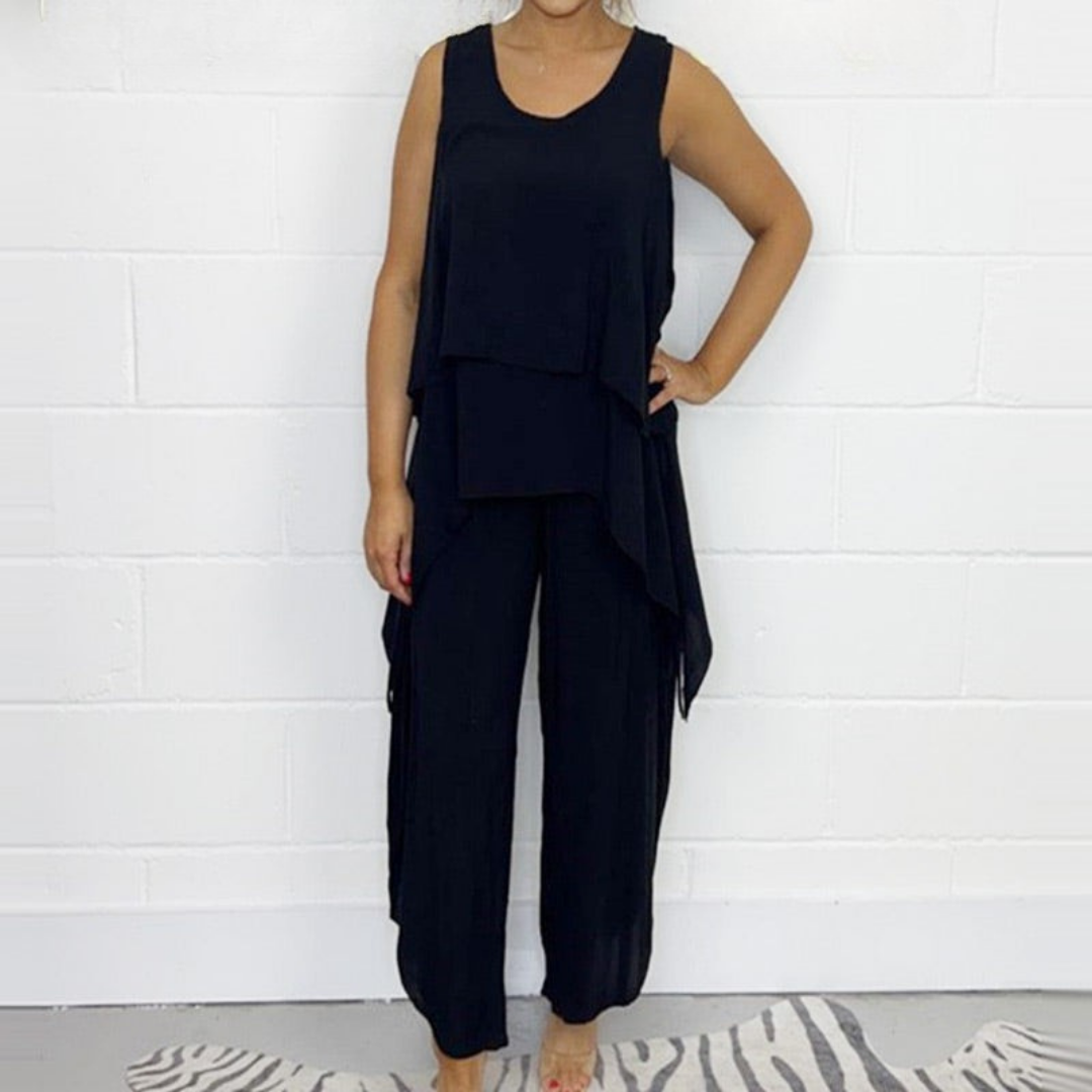 Step into effortless style with our Two-Piece Jumpsuit Set, designed for the modern woman who values both elegance and practicality. Whether you're heading to the office, meeting friends for coffee, or enjoying a weekend getaway, this outfit brings together polished sophistication and casual comfort in one versatile ensemble.
